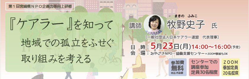 宮崎県NPO企画力等向上研修 Vol.1『「ケアラー」を知って地域での孤立をふせぐ取り組みを考える』