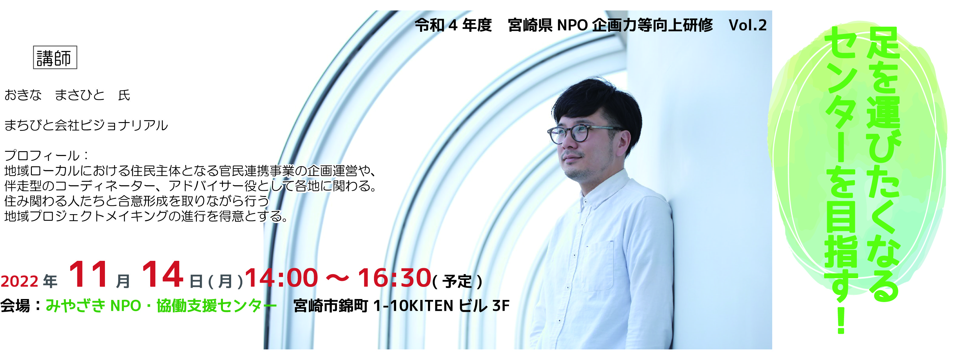 宮崎県NPO企画力等向上研修 Vol.2 中間支援センター向け講座『足を運びたくなるセンターを目指す!』