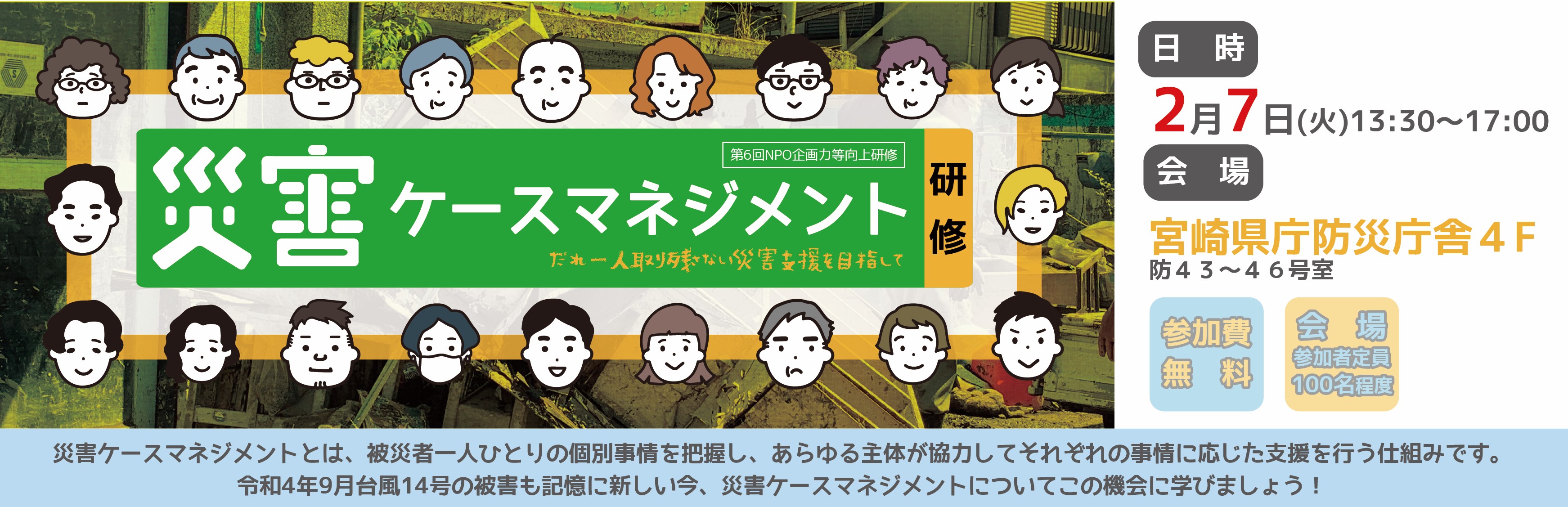 宮崎県NPO企画力等向上研修 Vol.6『災害ケースマネジメント研修』(共催:宮崎市民活動センター)(協力:宮崎県・宮崎県社会福祉協議会・NPO法人宮崎文化本舗